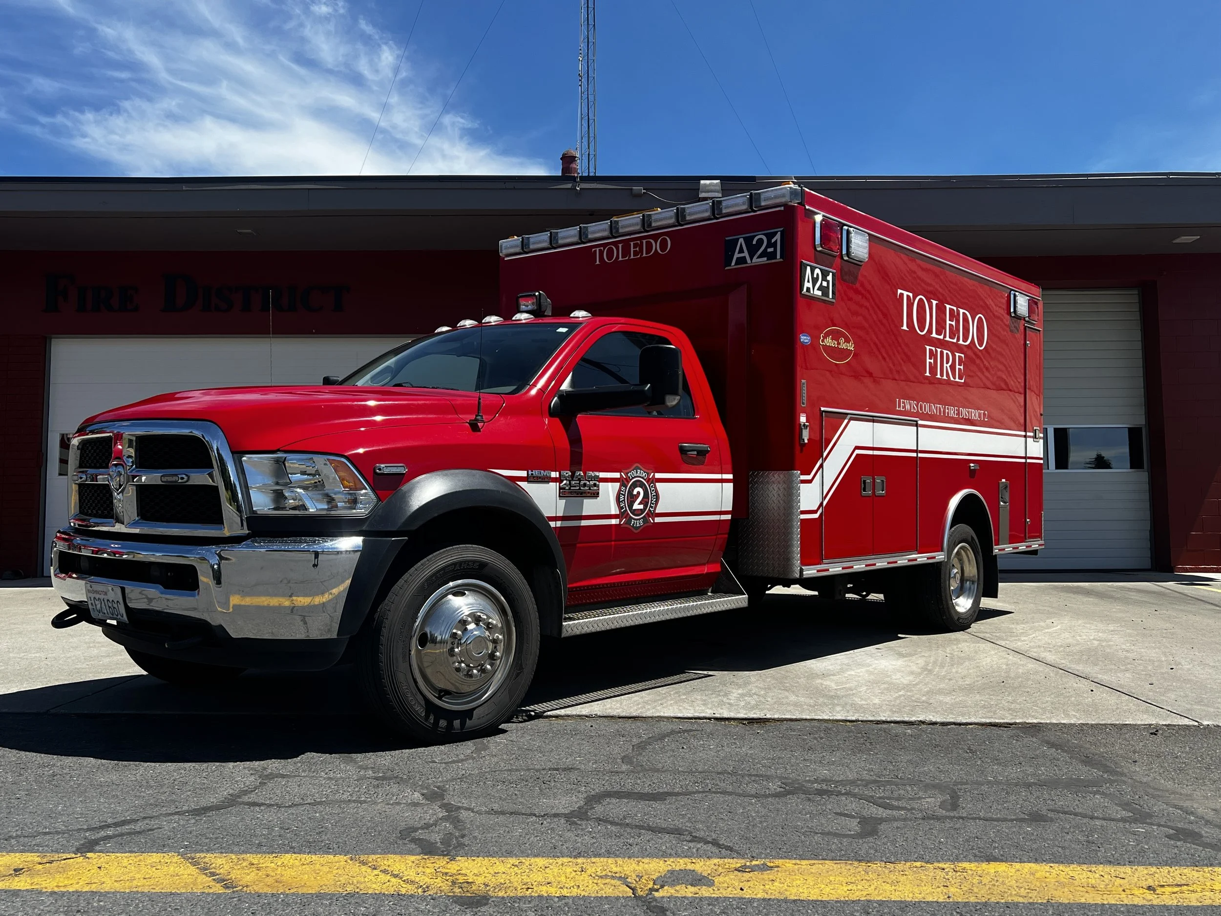 Station 2-1 is located in the center of town in Toledo, WA next to City Hall and the Post Office. This station is manned 24/7-365 with an EMT and Paramedic.